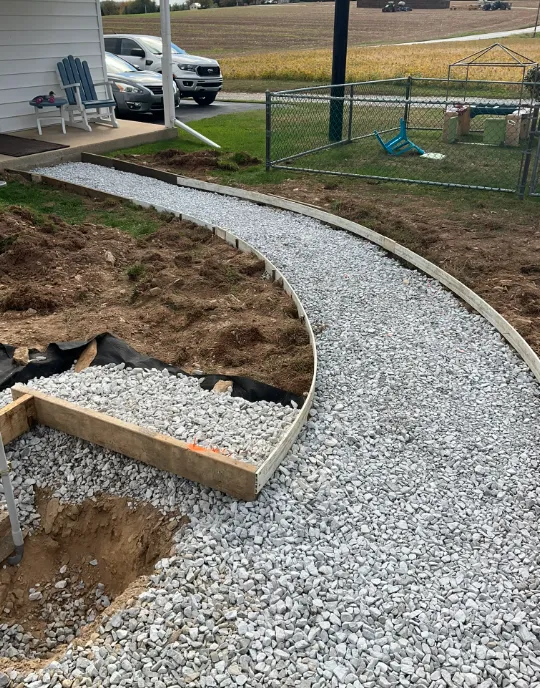 In Windsor, PA, we installed a 16’ by 22’ Concrete Foundation with a 36’ by 29’ sidewalk connecting to a porch.