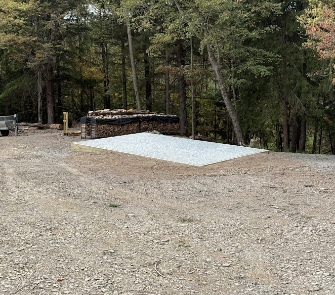 Here is a Gravel Shed Foundation we constructed in Palmerton, PA, for Frank B. The ground had an uneven grade of about 30″, and he intends to set a portable structure on it.