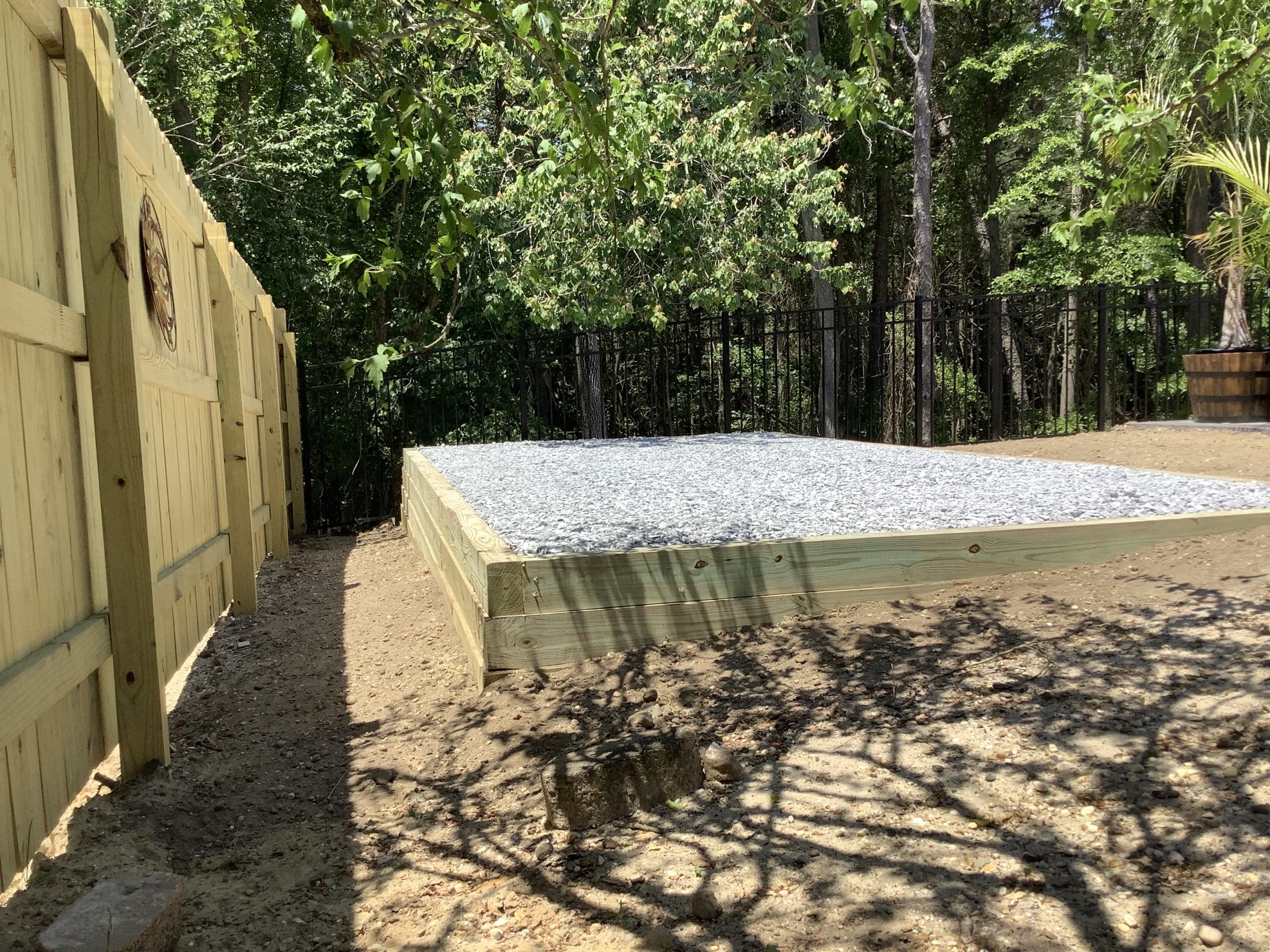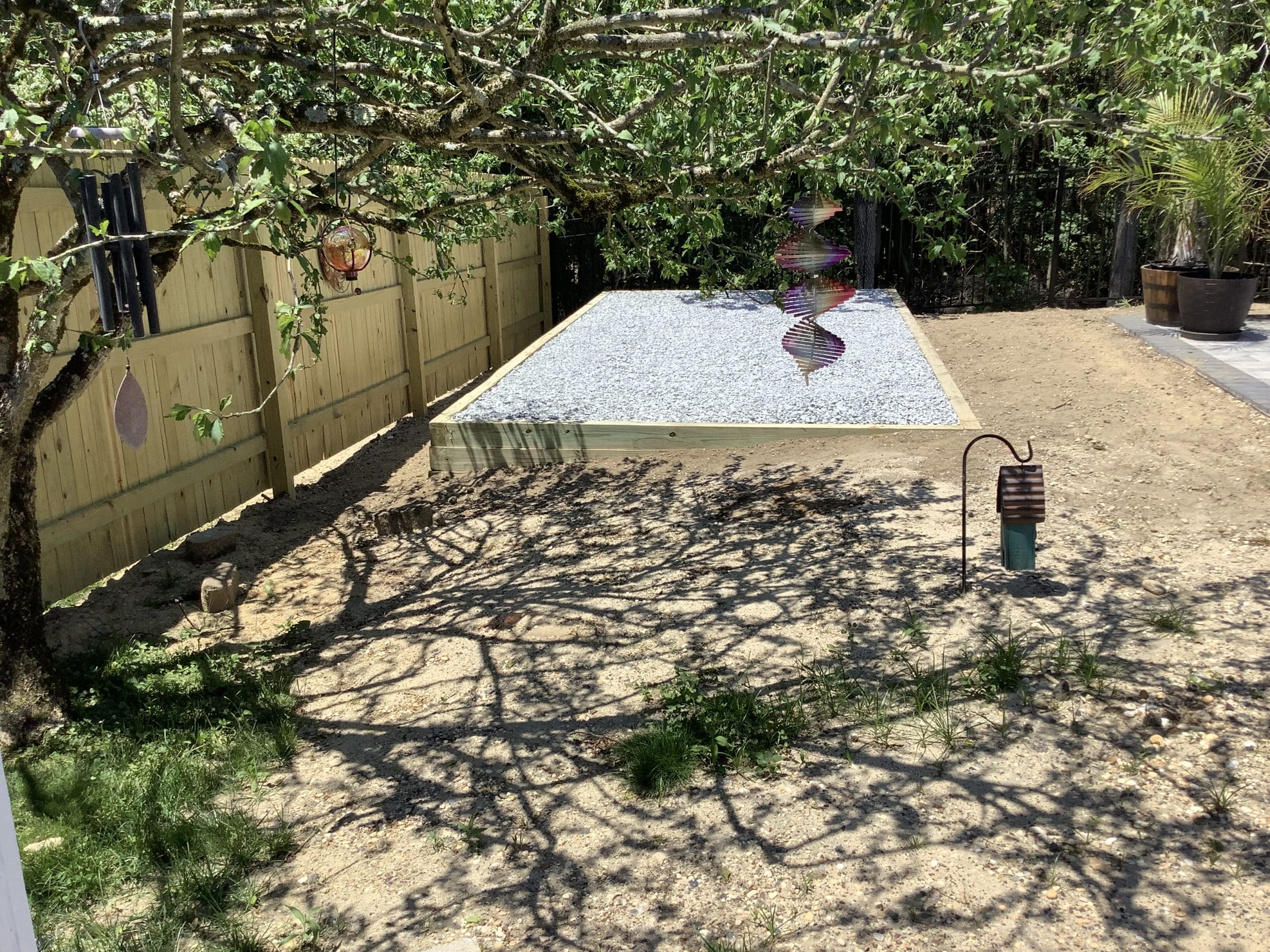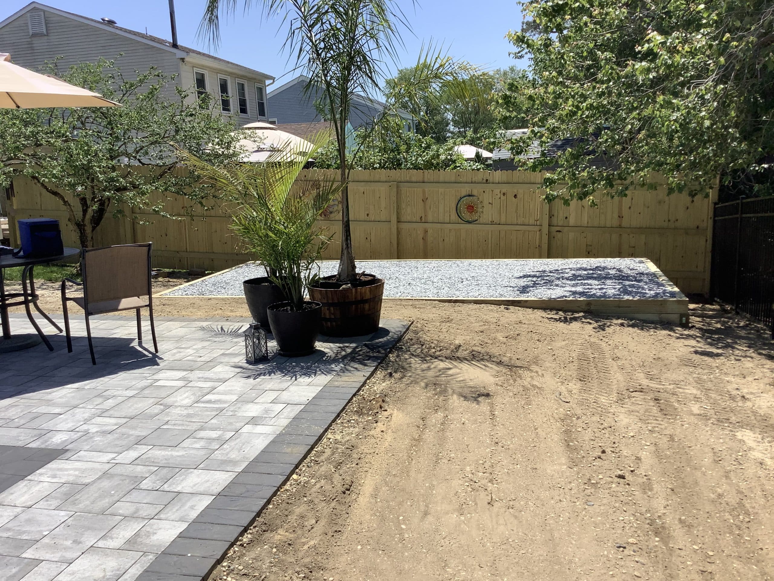 This 10×20 gravel shed foundation was built in Toms River, NJ. It was constructed for Chris L. He plans to install a backyard shed with dimensions of 8×18 on this gravel shed pad.