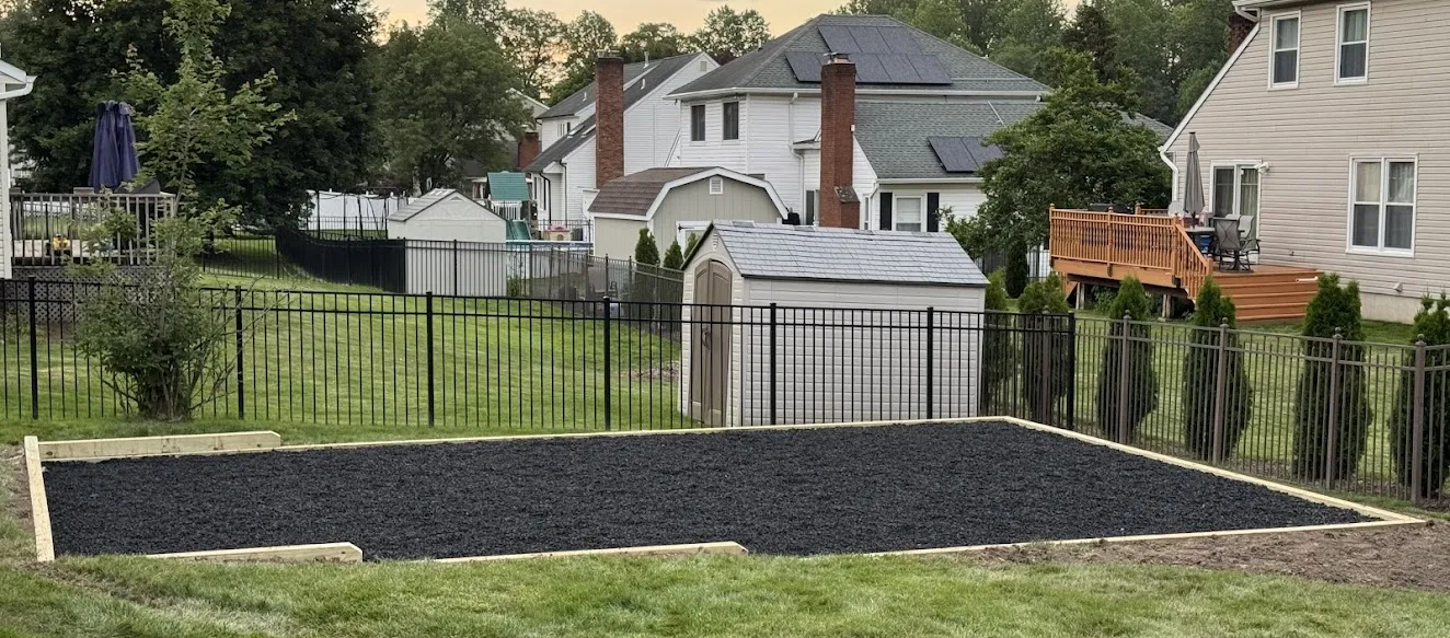 In Boonton, NJ we installed a 21’ by 31’ Playset Base. The site was approximately 31″ off level, and is now ready for the Playset.