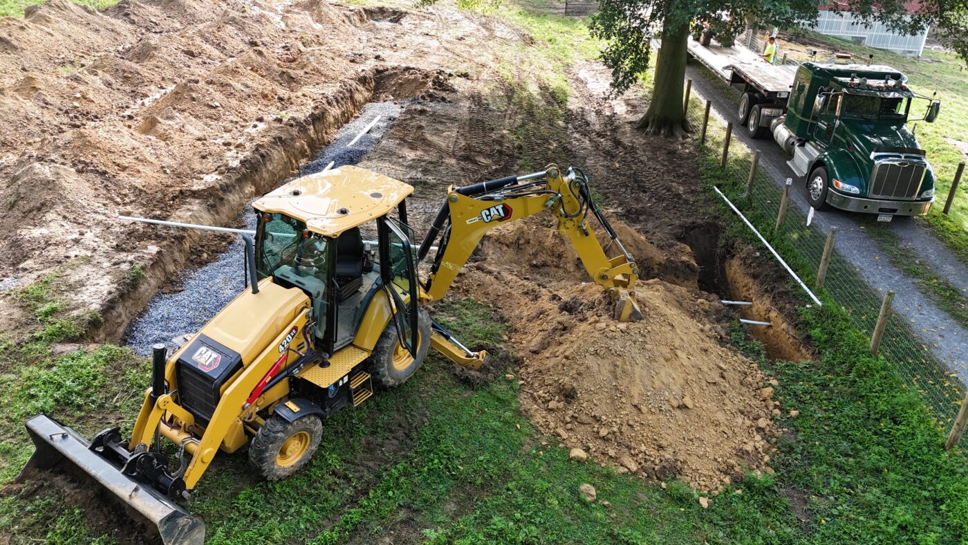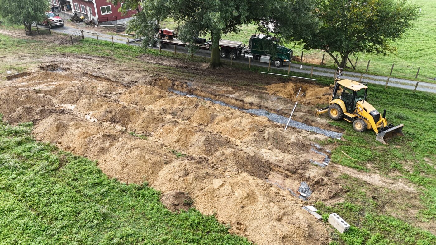 Here is a job we did in New Holland, PA. The job was a Septic System Replacement. The crew had to drill under the driveway in order to get the pressure line to the Drain Field.
