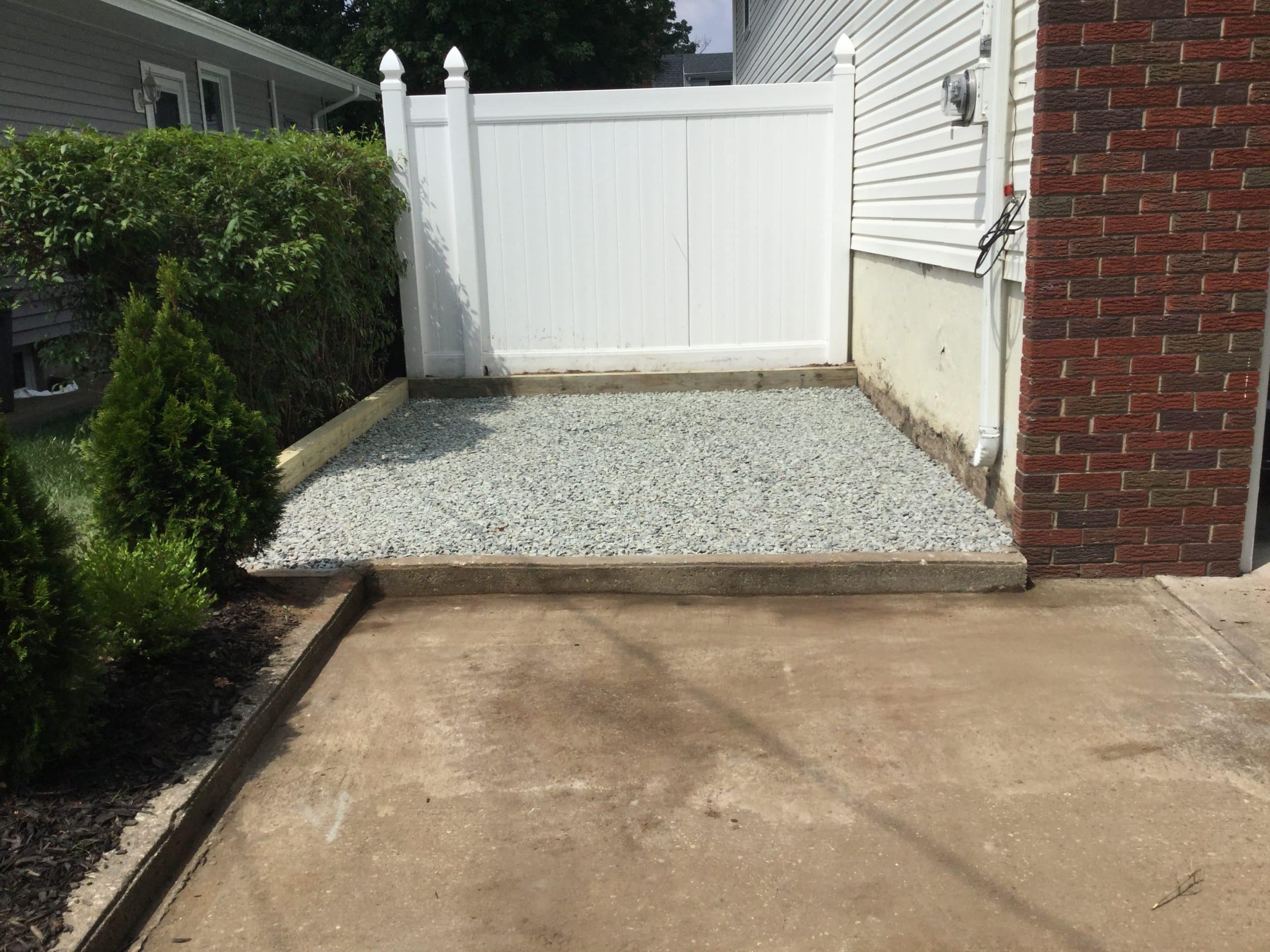 This 10×10 gravel shed foundation was built in Fair Lawn, NJ. It was constructed for Peter G. on the ground level. He plans to install a storage shed with dimensions of 8×8 on this gravel shed pad.