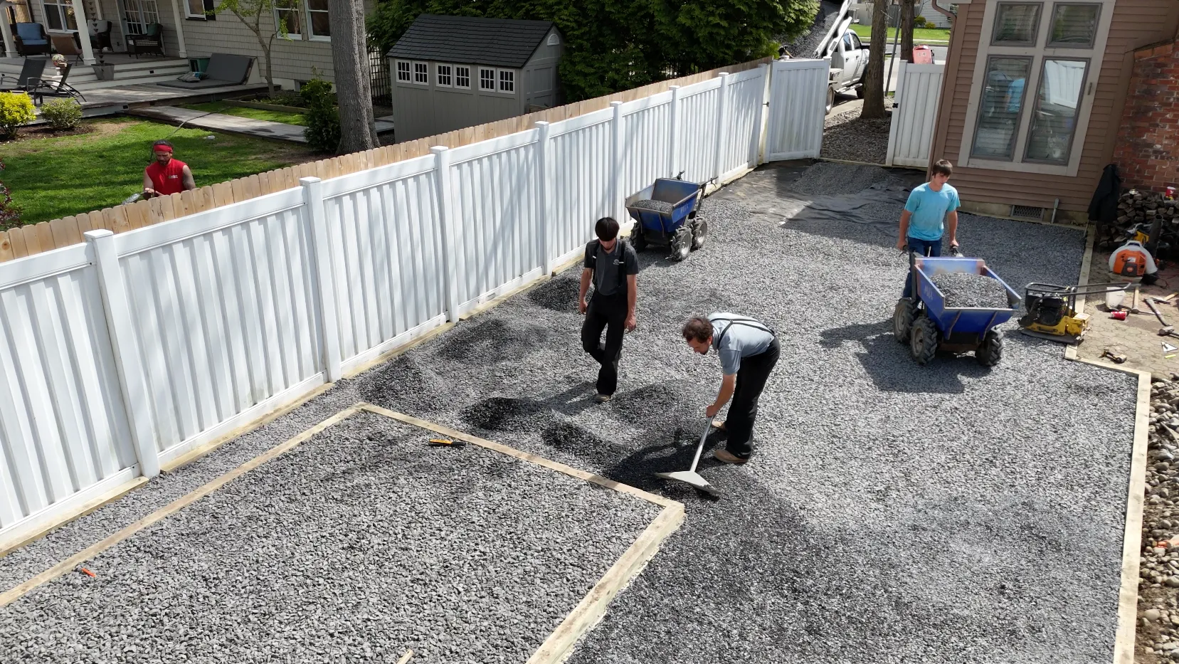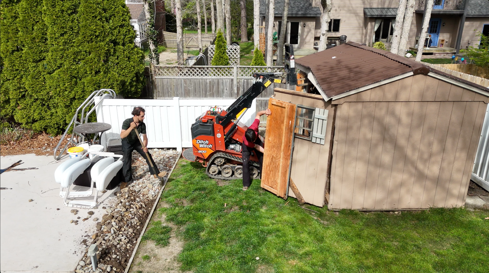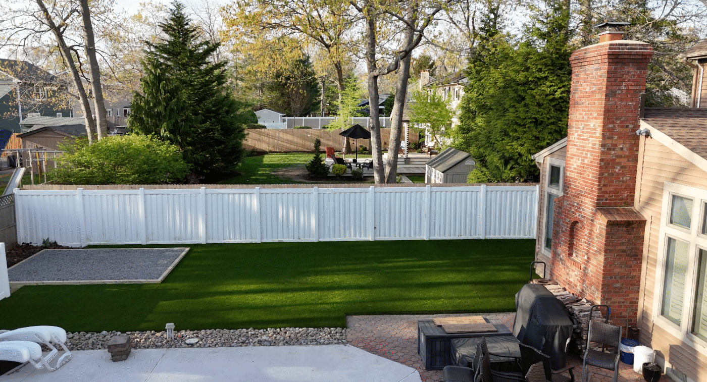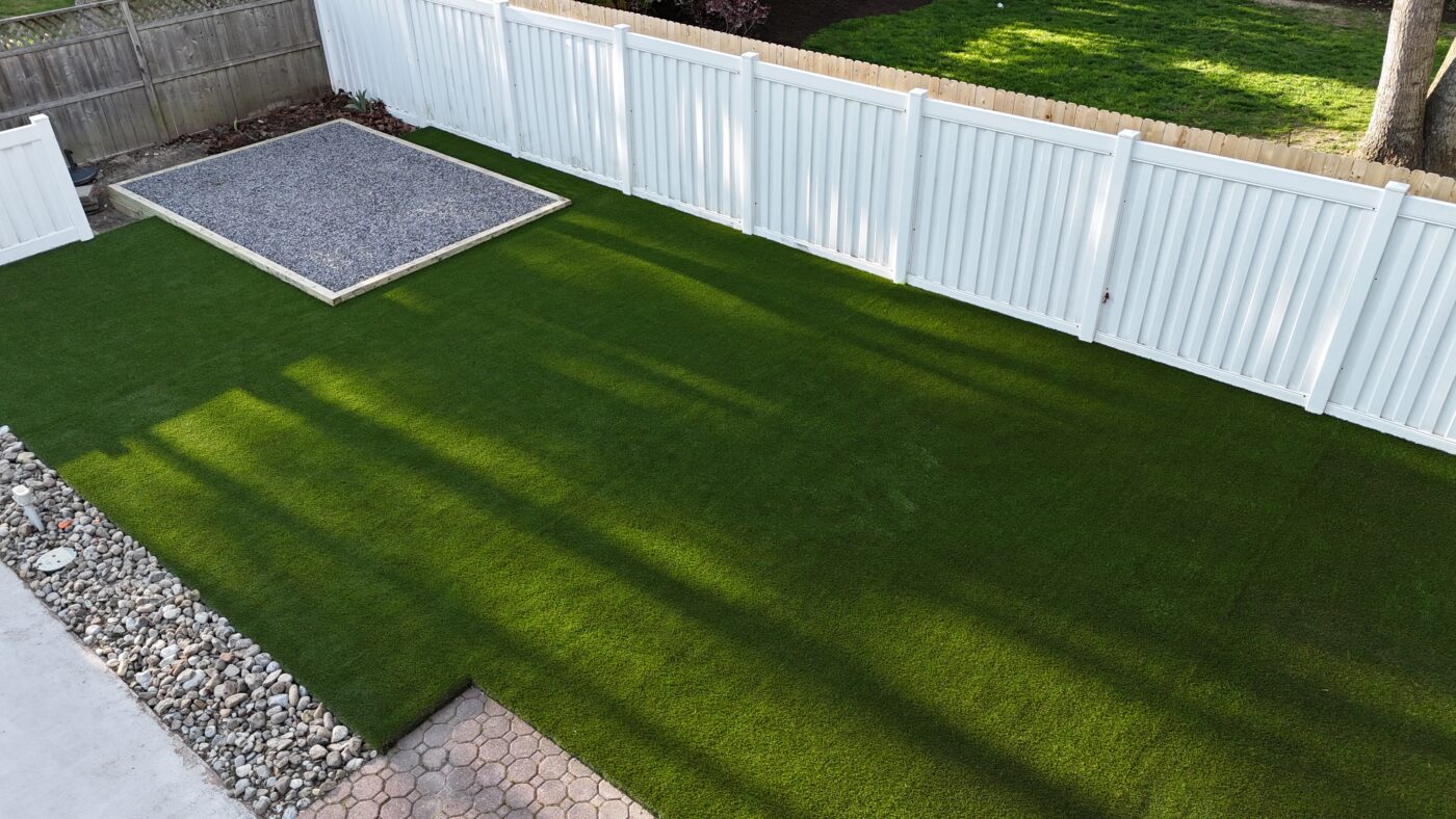 In New Jersey, we removed an old shed, prepared a new shed foundation, and installed pet-friendly artificial turf.